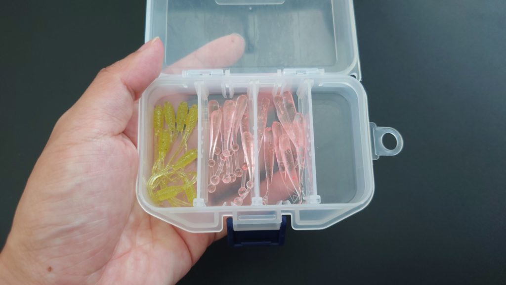 左から3つは未使用ワームで一番右は使用済みワームを入れています。